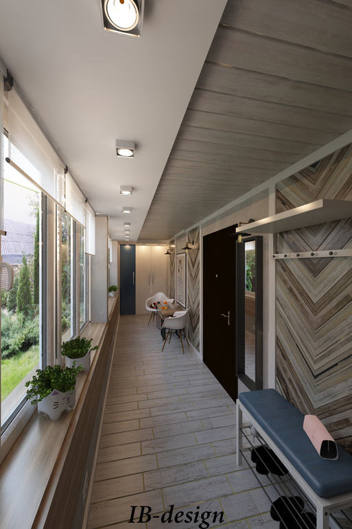 Итак, при входе - пара зеркал, скамья для обуви, вешалка для одежды. Достаточно компактно и функционально - только для сезонных вещей. Для всего остального - шкаф-купе уже в самой прихожей и вместительный шкаф у дальней стены веранды, где можно спрятать пылесос, несезонную обувь и другие вещи…