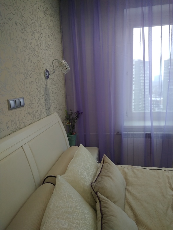 Интерьерное решение спальниДоброго времени суток, девочки!Никак не могу определиться с декором спальни и подбором штор к ней.Комната маленькая 14м2,и очень не хочется перегружать её тяжёлыми шторами.Этаж высокий,почти всегда светло.Сегодня просто пасмурно. На окне будут светофильтры