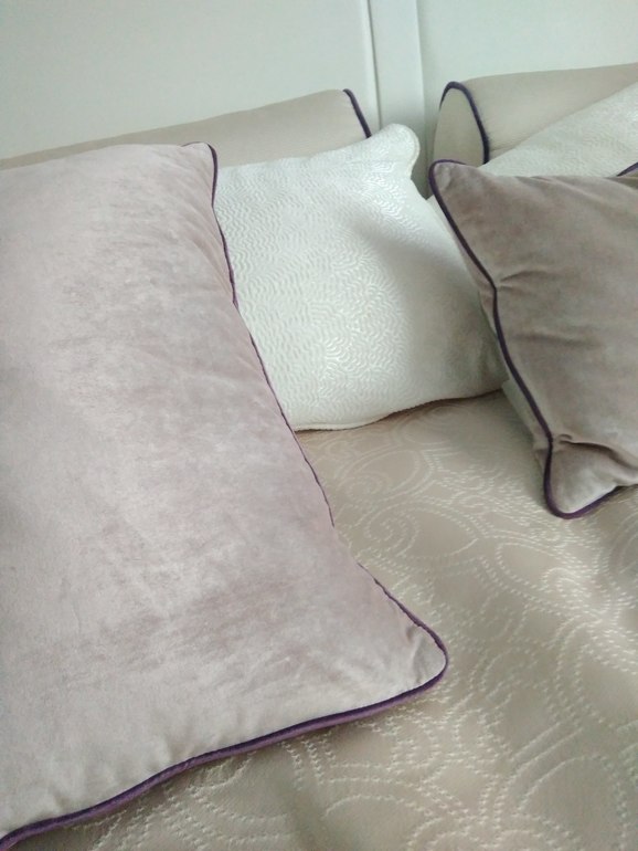 Нет, покрывало с подушками однозначно менять не будем.Оно очень дорогое и нам нравится