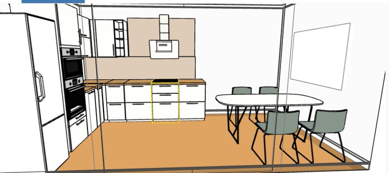 -сложности с оформлением лицевой стены (как оформить переход фартука к столовой зоне ?)