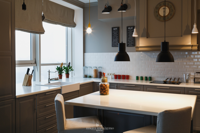 Задолбалась с навесными шкафами и при планировании новой кухни хочу от них отказаться. И возник вопрос, как оформить стену с рабочей стороны? Фартук же из плитки отпадает? Будет смотреться нелепо. Выкладывать всю стену плиткой? Или есть какие другие материалы?