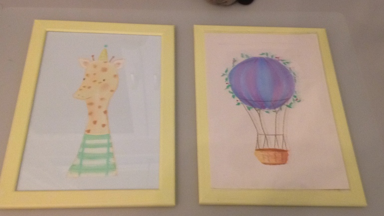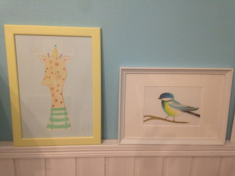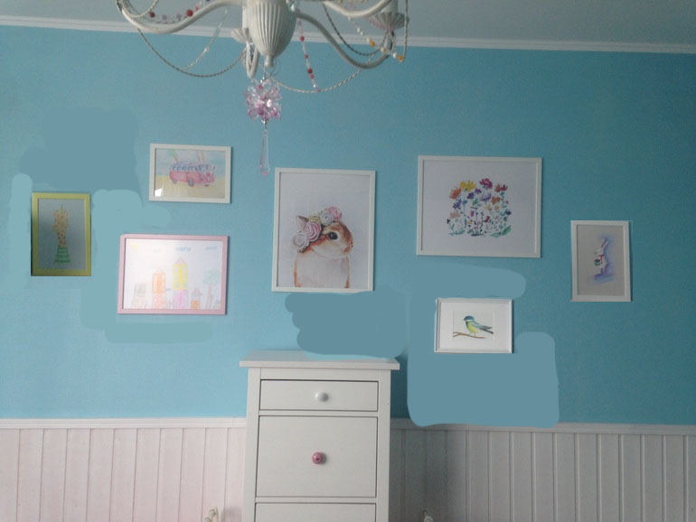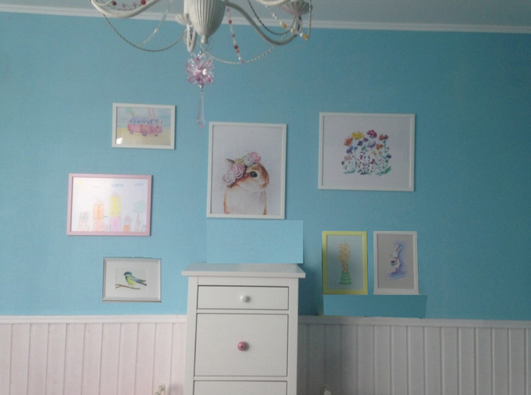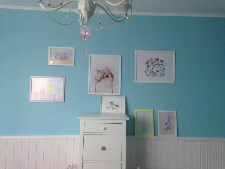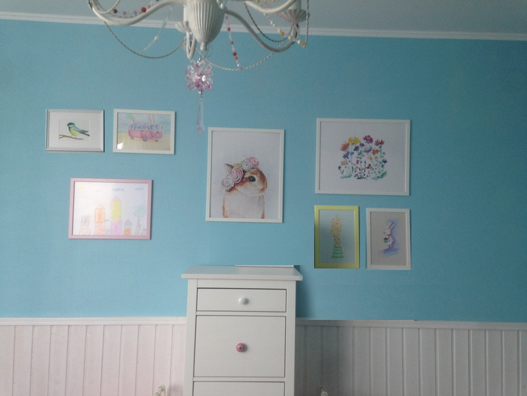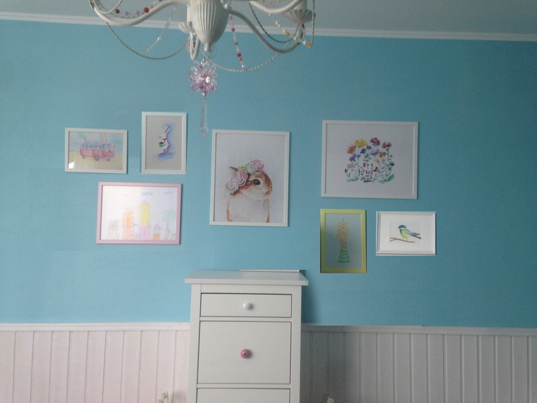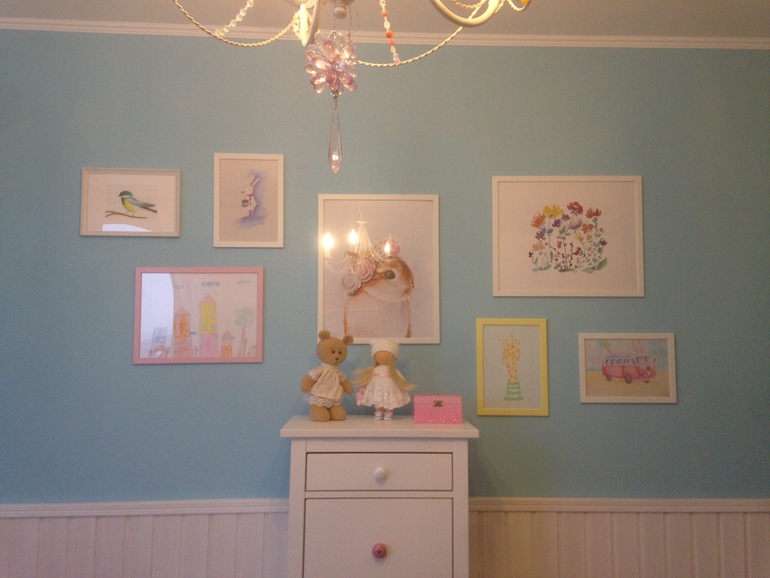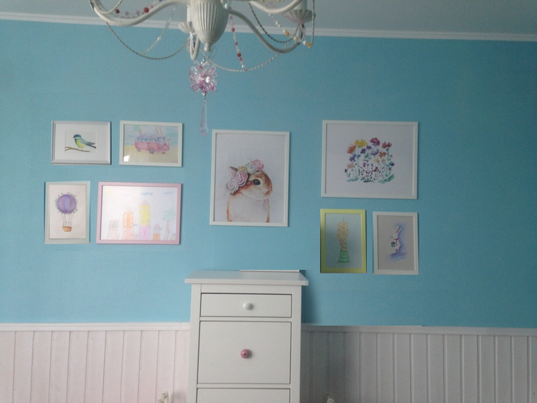 Интерьерное решение жилых помещений.Все, что весит на стене , так и останется, как повесить оставшиеся 3 шт? Зайца с подарком недалеко ко от автобуса , а синица и жираф под цветами? Такой разброс по стене , растянуть . Или синица над центральным кроликом , а жираф с зайцем под цветами на одном уровне ? Может есть какие-то другие предложения ? Домики слева -это рисунок дочери , убирать не хочу .