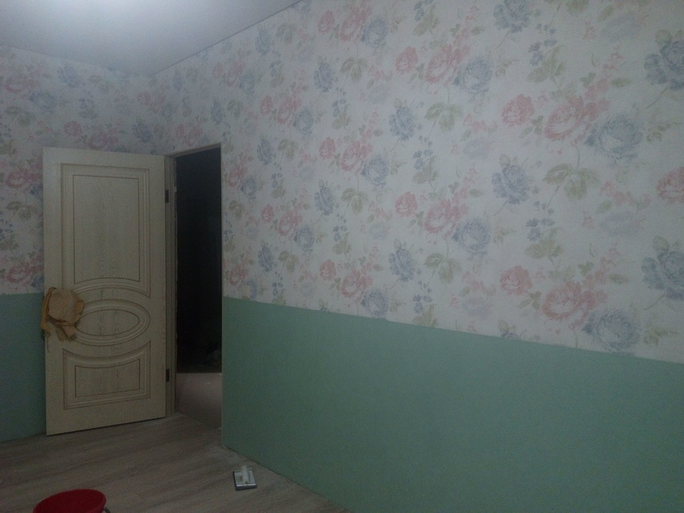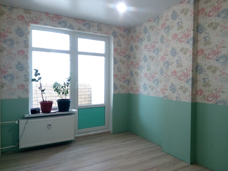 А внизу какого цвета обои? А то они мне какими-то бирюзовыми или мятными кажутся...