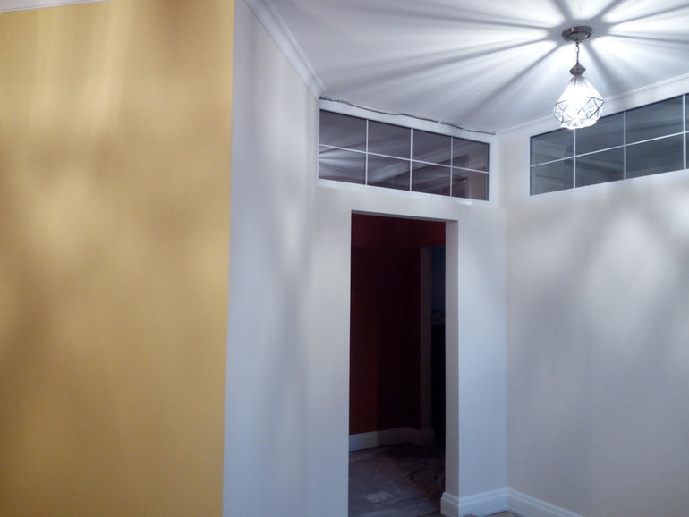 Добрый! Окошко с раскладкой наша идея, но по нашему эскизу делала компания застройщик,там были гипсокартонные перекрытия, мы изменили метраж комнаты и заменили все на кирпич, это не обои, это краска,гипсокартона нет ни на одной из стен