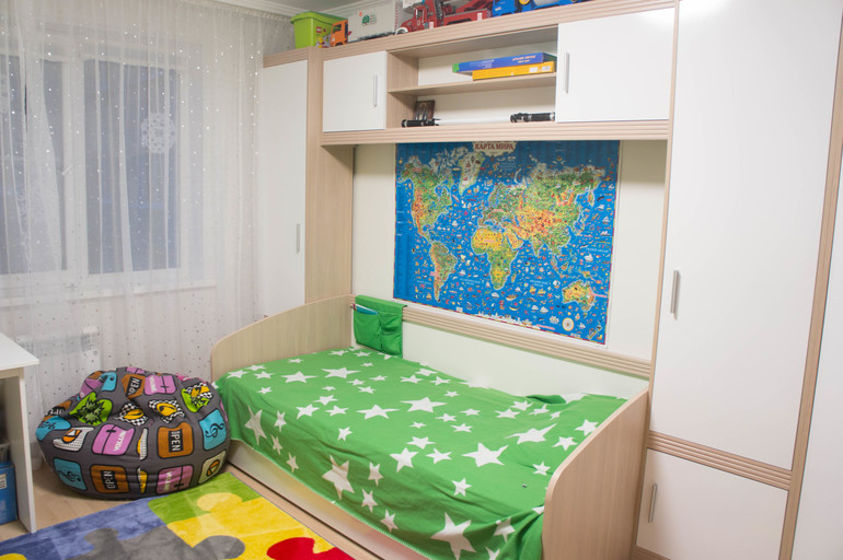 Красиво у Вас.Будем клеить где кровать. Но если бы мебель была у нас как у Вашего сына то клеила противоположную)