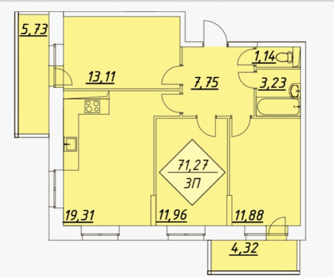 + две одинаковые по размеру комнаты можно отдать под детские и огромный плюс- в них нет балкона