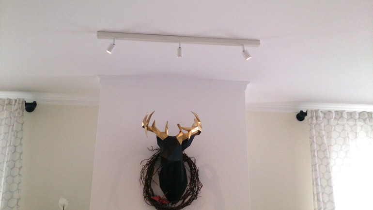 У нас так. Хотела трековые, но муж был (почему-то) против. Комната около 25-30 кв.м. четыре таких на комнату (если только такое освещение) не достаточно. У нас ещё два потолочных светильника, торшер, и подвесы над островом кухонным