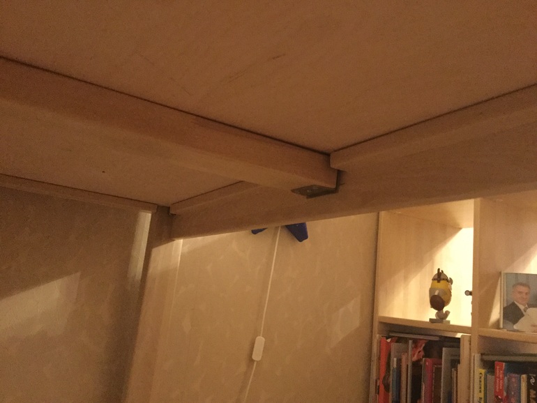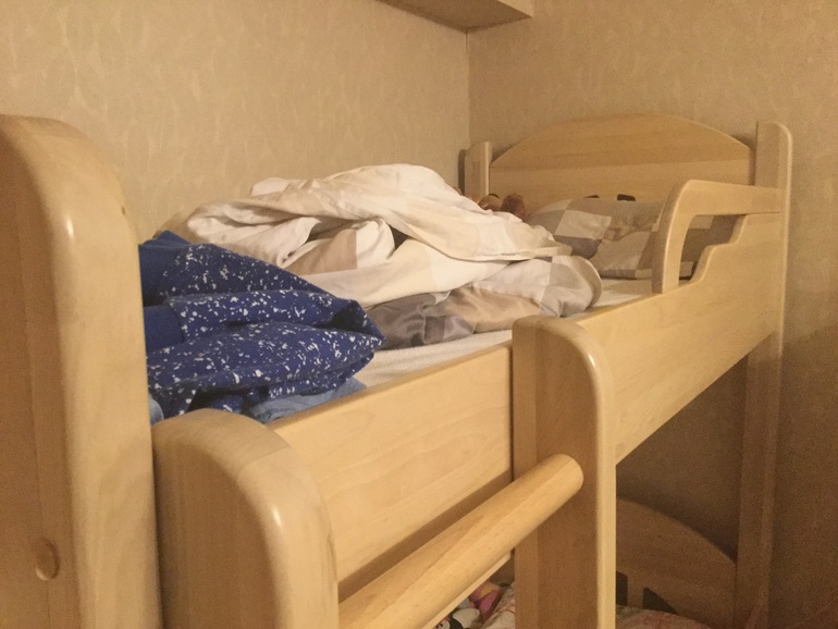 Я же рассказывала, что у нас двухярусная кровать вообще не стандартная. Пришел их замерщик, он же главный инженер и я ему только говорила, что хочу вот такую кровать, такого цвета, такого размера, тут будет крепиться, здесь ящик, тут полки. Все сделали из массива. Я сейчас пофотографирую крепления, форму и гладкость.