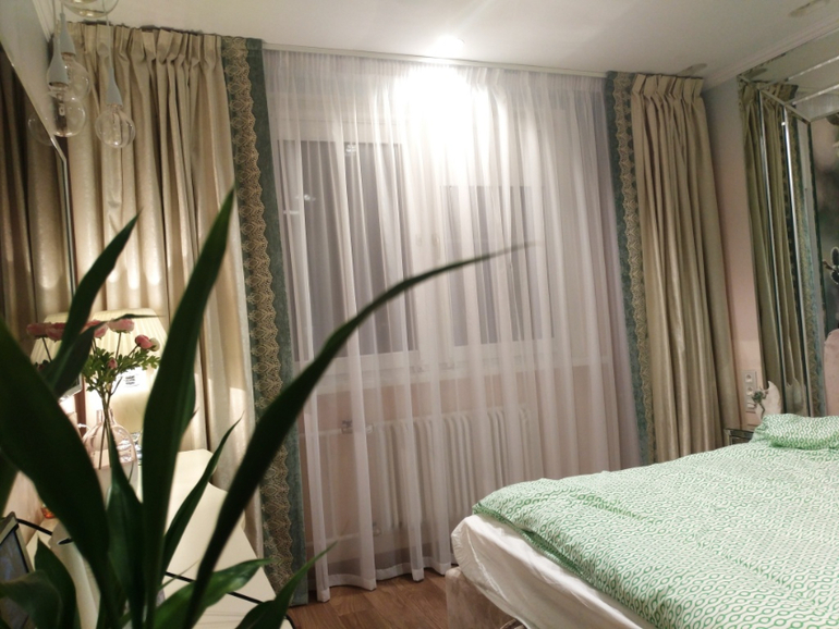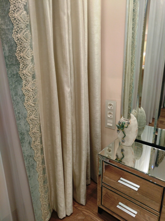 Очень красиво!!! А зелёные шторы под кружевом, это второй ряд или так для контраста пришито?