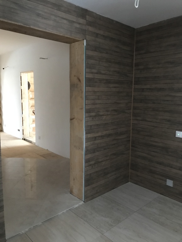 Муж хотел, чтобы было полное ощущение того, что стена деревянная, чтобы швов не было видно. А тут и затирка темнее, и шире шов получился, видны "прямоугольники" плитки. Его это очень раздражает)