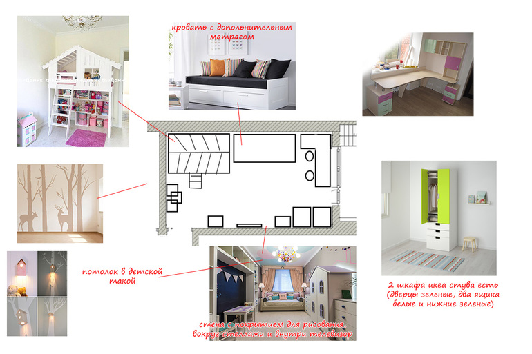 я очень хотела магнитно-грифельную стену и кровать домик))