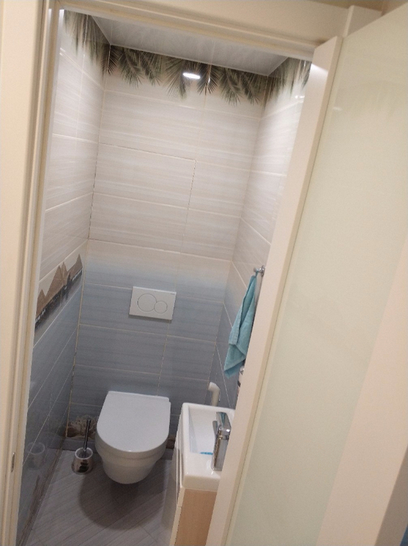 Потом вызвали бригаду на санузел. И немного позже маляров. Но бригада санузла нам не понравилась и мы разорвали с ними договор. И наши маляры взялись закончить санузел.