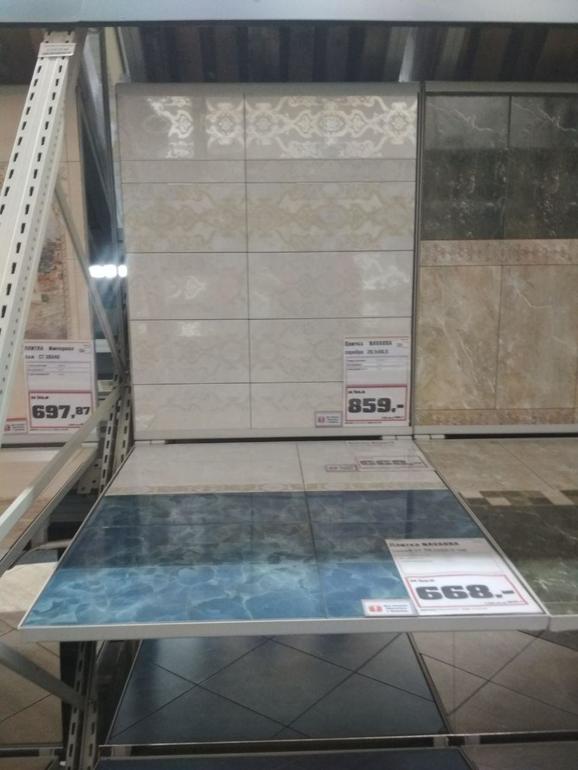 Кстати, кому нужен особенно керамогранит - рекомендую, загляните! У нас его коллекций 20 просто свалили в кучи в проходах - не пройти - и развесили распродажные ценники, тем временем витрины и полки забивают новой коллекцией от нового поставщика.