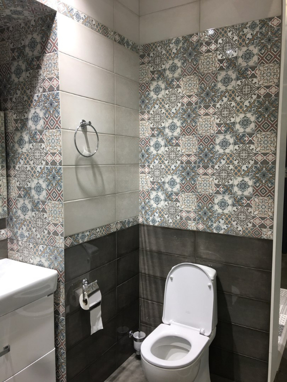 Интерьерное решение ванной комнатыСкоро начнем делать ремонт в новой квартире. Понравилась эта плитка для ванной комнаты и кухни. Хотела спросить никто не делал или не видел в живую как смотрится? И как качество плитки?
