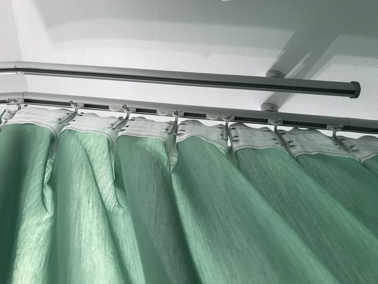 Карнизы из ИКЕА, муж сам их подпиливал и стыковал под углом. Та часть штор, которая на скосе - неподвижны.