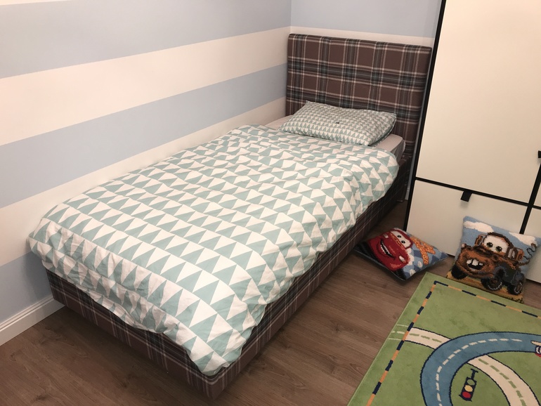 Интерьерное решение спальниВ начале 2014 года купили мы в Асконе кровать и матрас. Кровать (по-моему называлась Элиза) в белой эко коже категории 2 (сэкономили, блин). Матрас Mediflex Sleep Control. Спустя 3,5 года мы имеем: эко кожа на изголовье кровати потрескалось и сыпется как труха, но почему то только со стороны супруга))), матрас сильно продавлен.