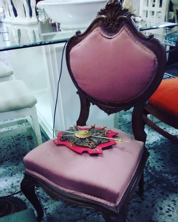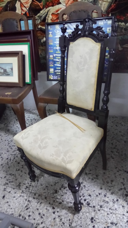 Теперь хочется попробовать что-нибудь посложнее. Выбрала стул. Уже разобрала, покрасила, состарила и начинаю обивку. Об этом в другом посте напишу, когда будет конечный результат. А пока хотела с вами поделиться результатами моих поисков в магазинах и лавочках "вторые руки" города (да, я облазила их все, и все владельцы-испанцы меня узнают)))