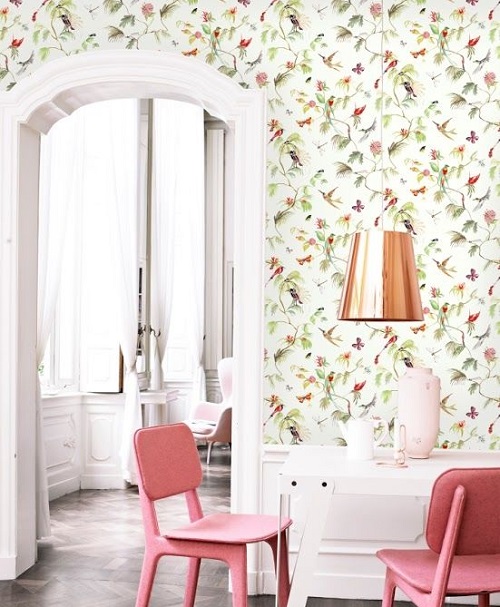И я в них влюбилась! Хоть одна комната у меня не вызывает вопросов в плане обоев )) Одна стена будет с птичками на белом фоне, а остальные - зеленые компаньоны. Вот фото в реальном интерьере с просторов интернета :-)