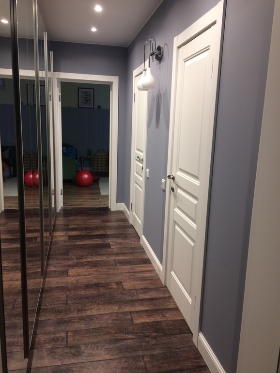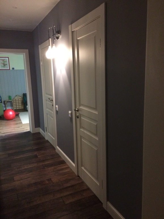 Красивый коридор!) а это у вас обои или обои под покраску? И двери понравились) Сориентируйте, пожалуйста, где такте покупали