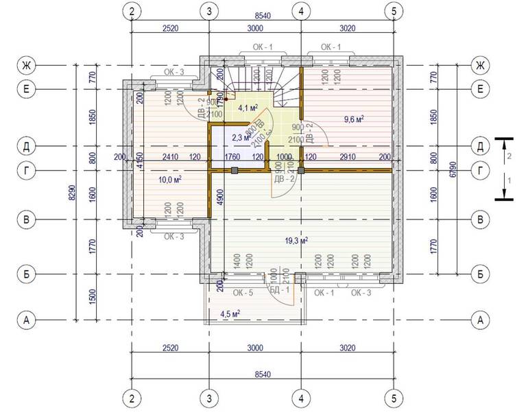 Площадь 1-ого этажа 94,5 м2 Площадь 2-ого этажа 65,8 м2