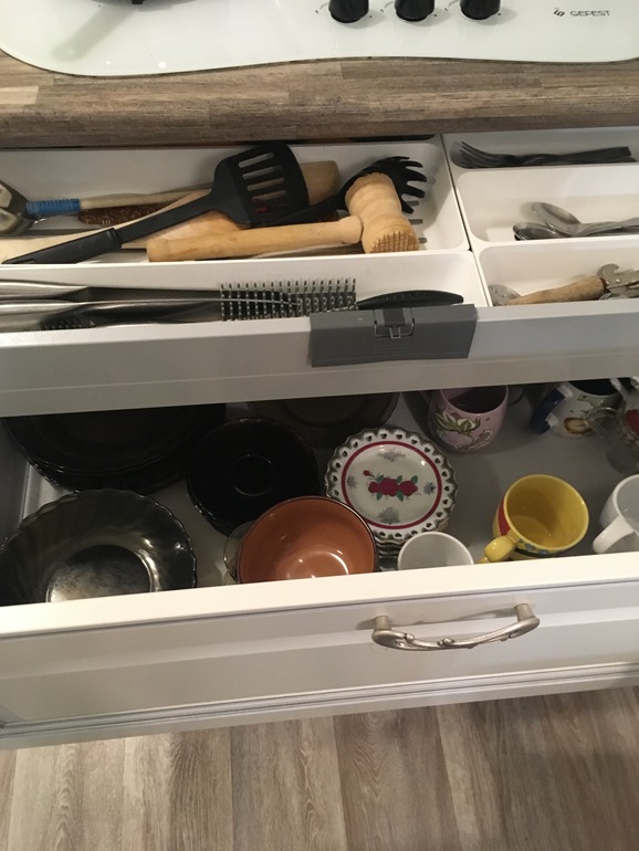 Да, 80 см. В нижнем кастрюли и сковородки. В верхнем ложки, вилки, ножи, тарелки и кружки