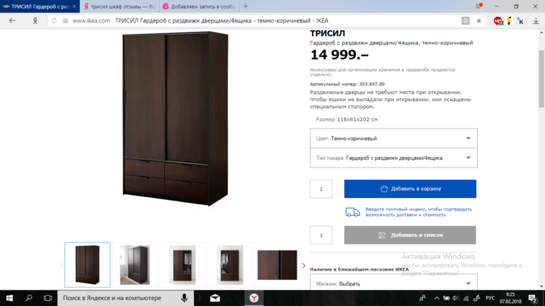 Вопросы и ответыЗаказали в икее Тодален ( у нас только через посредников, икеа ближайшая в Питере). ну в общем, зря его прождали, вчера сказали, что нет в наличии и ближайшие полгода точно не будет. Посоветовали шкаф Трисил. Но мужа смущает, что мало полок. И вообще, я не могу понять, вместительный он или нет. Может кто знает? И не мало ли 118 см ширины шкафа?