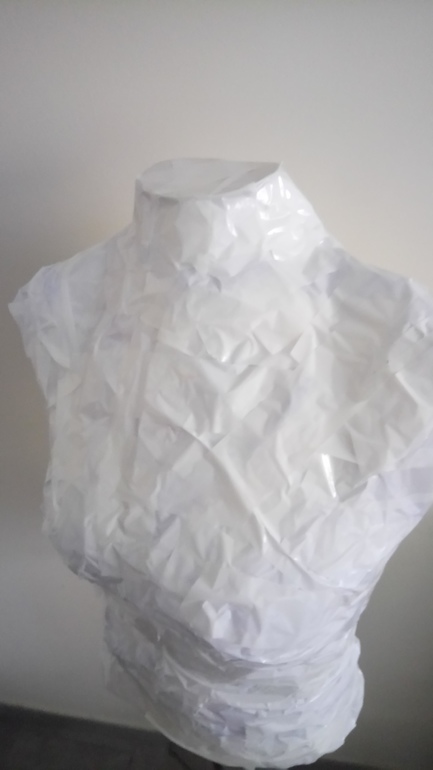 Сначала выкроила прямо на манекене по выступающим частям переднюю часть
