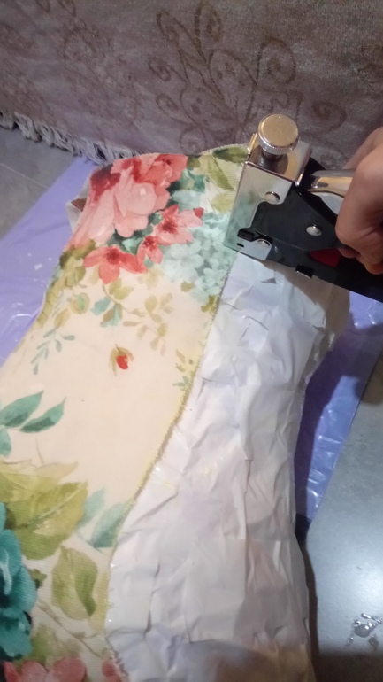 Затем степлером прикрепила края, следя, чтобы не было складок и морщин: