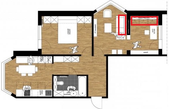 по диагонали от двери ставим кровать, потому что больше по сути ее ставить некуда, двухэтажный домик с окнами и крышей чтобы каждый ребенок спал уединенно, + так будет место для игровой зоны рядом с домиком к эркеру угловой стол с равнобедренными сторонами и боком к двери шкаф трехстворчатый. Расскажите потом что сами придумали. Мы вообще думали уже о том чтобы поменять зал и детскую местами, он там ремонт именно под эти комнаты, но лет через 5-6 поменяем местами, потому что девочки вырастут и нужны будут именно отдельные кровати, в этом вся сложность