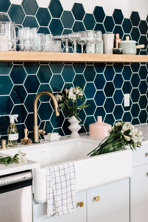 Не надо мозаику) и точно не надо синий) Я бы тоже высказалась за Белый, столешница к вас деревянная, я так понимаю. Можно попробовать белый с коричневым пэчворк