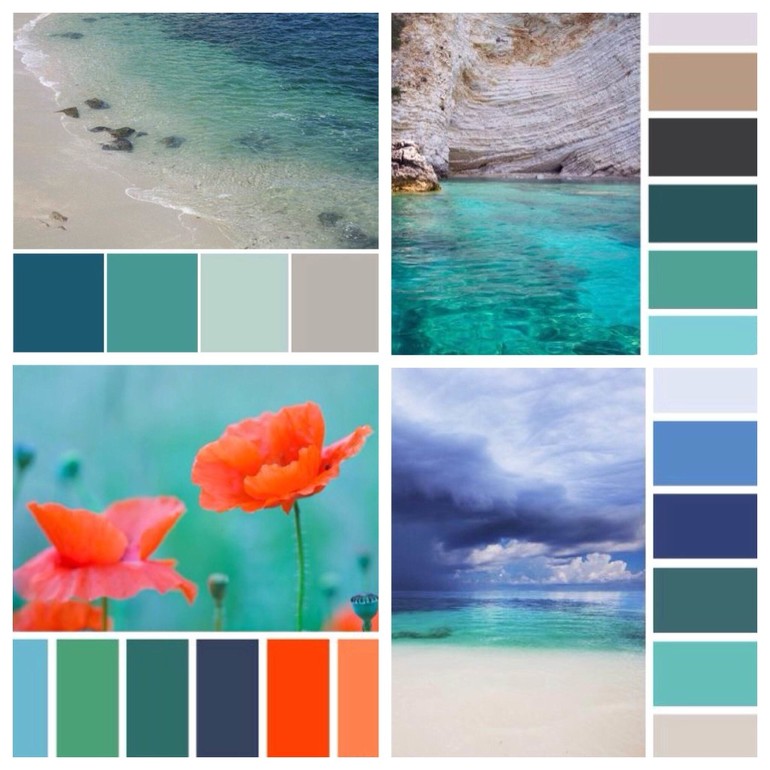 Сочетания цветов с бирюзовым и коричневым. Мне нравится с серым бежем и зеленоватым и маленькие вкрапления кораллового