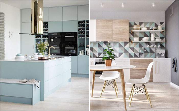 Белый сольется с гарнитуром, а цветной будет спорить с активной бирюзовой стеной. Тут придется выбирать из "двух зол меньшее".