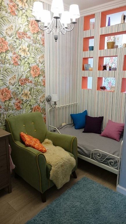 У знакомых видела разделение книжной полкой от пола до потолка. А половинки выкрашены в цвет ребенка и посередине как бы переходят из цвета в цвет. На подоконнике сделана сидячая зона типа расширен подоконник, чтобы романтично смотреть вдаль) А насчёт отдельный комнат, я просто ржу. Я отлично сосуществовала со своим братом в меньшей комнате и разницей в 8 лет. С его универом и моей школой и разными распорядками дня, я вообще не помню неудобств. И да, у нас был один диван, стенка на всю стену, общий стол и выход на лоджию. И как я выжила. Магия.