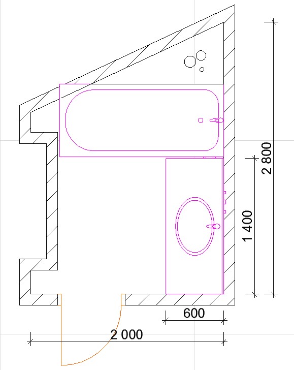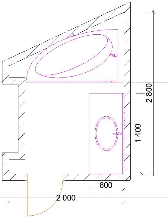 Или делать вот такого плана...чтоб в ванну можно было войти только с одной стороны, если понятно...простите, рисовала на коленке)