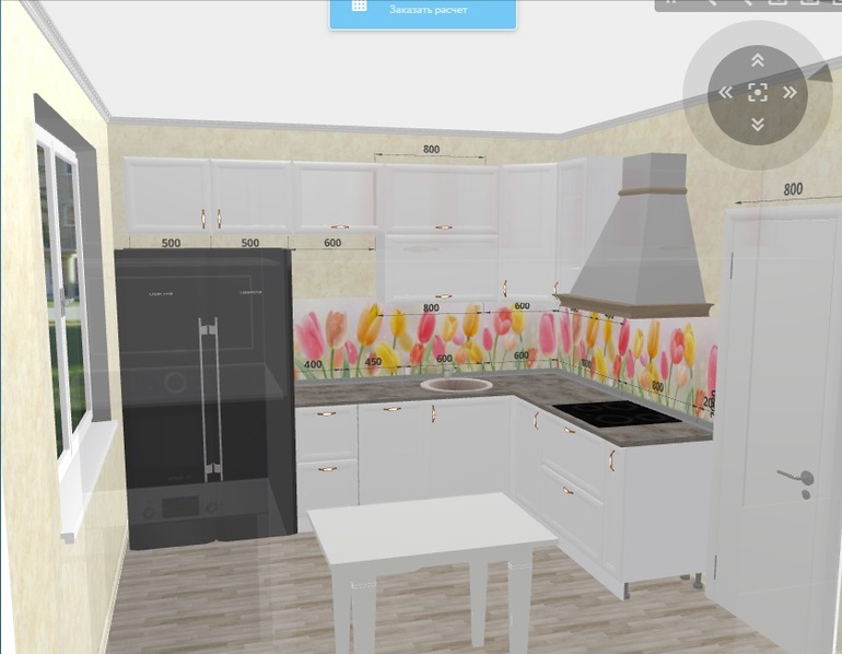 Я вот так еще думаю,а на противоположную сторону поставить пенал со встроенной техникой и пенал-серват