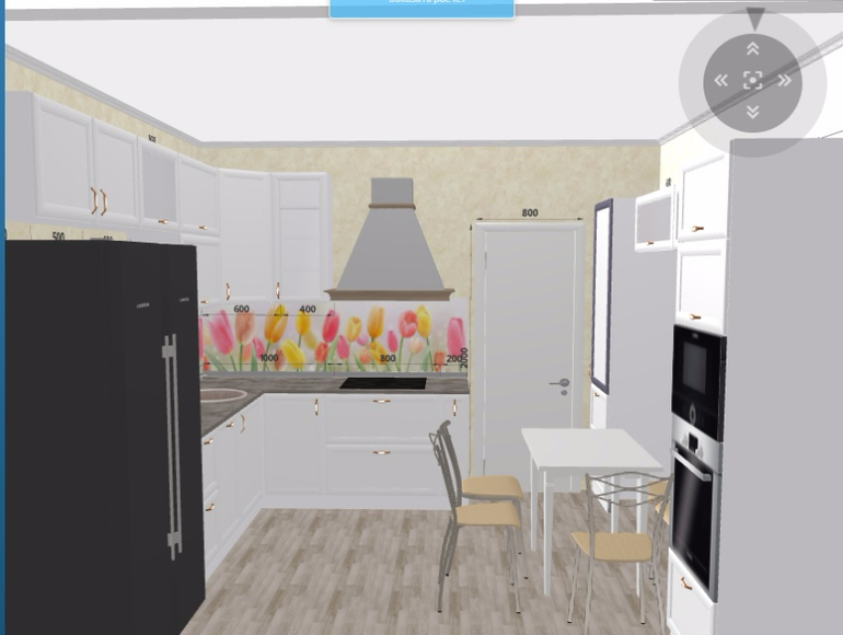 Дизайнер должна вам дать планы помещения в разрезе и сверху где расписаны все размеры как мебели так и пространства от мебели к мебели что бы вы реально понимали Где, что, и сколько места останется. Дизайн - дизайнера мне не нравится если честно. Так как когда заходите на кухню мебель + холодильник создают впечатление прохода в тунель.