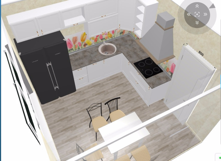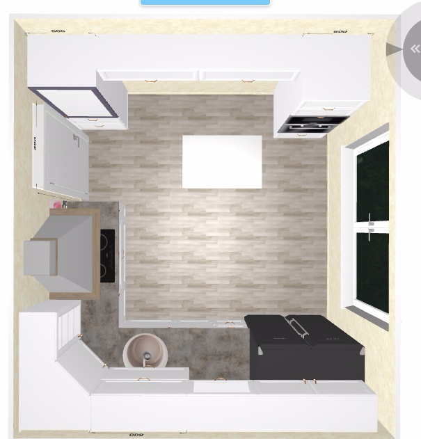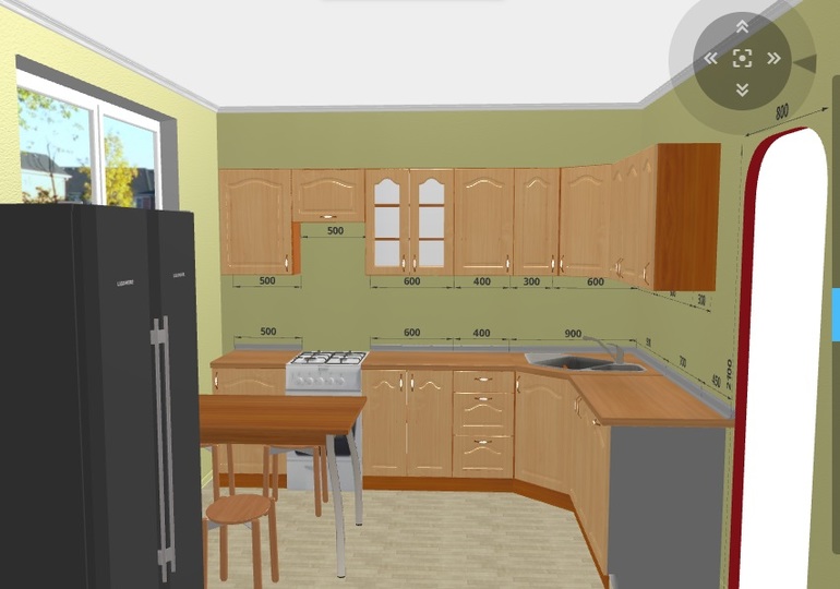 У меня сейчас на кухне такая растановка. Рабочего места не хватает, раковина ужасно не удобна тем что круглая и своим расположением создает дискомфорт. В скором времени хотим делать ремонт и перенести всю технику и рабочее пространство под окном. Откажеммя от двери так как открывается во внутреннию сторону кухни.