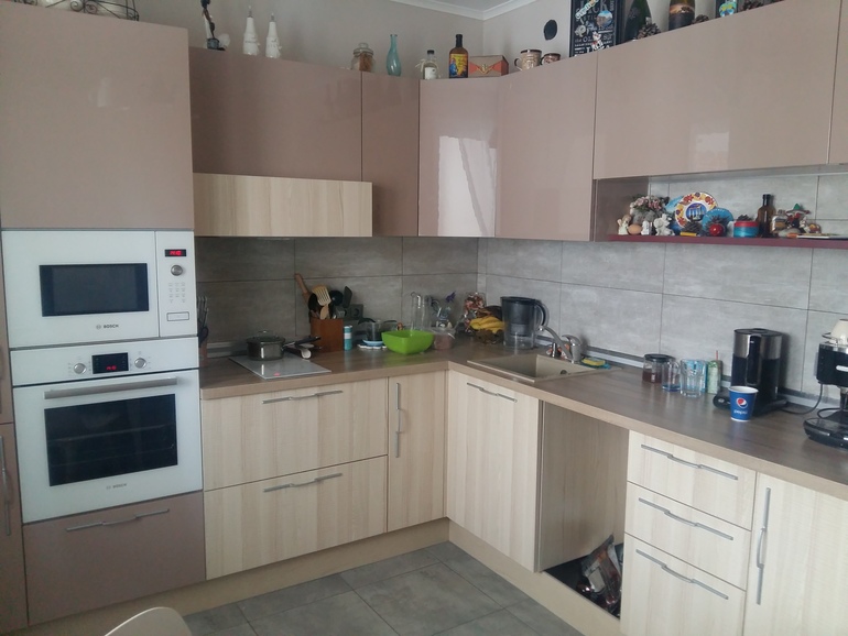 Интерьерное решение кухниПомогите идеями с фартуком на кухню. Кухня глянец, цвет мокко и верх и них. Вытяжка чёрная. Какой бы вы посоветовали фартук.