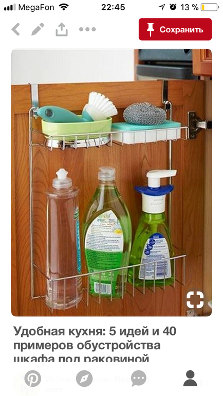 Рs подумала и решила , что ни чего на дверцу вешать не буду. Правильно мне написали что дверь провиснет. В икеи лоточки есть , на дно полки под мойкой поставлю , лишний раз согнусь. Средство для мытья во встроенном дозаторе будет