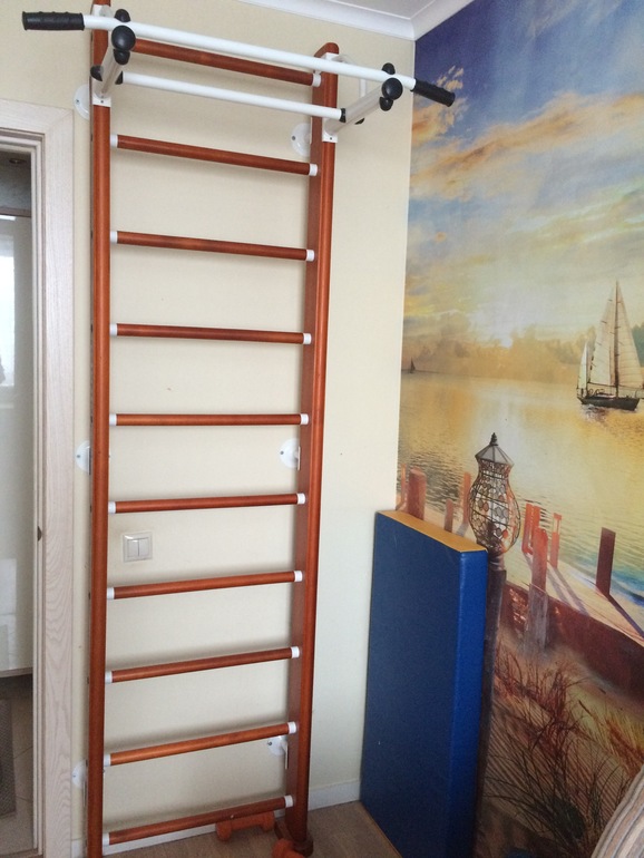 Интерьерное решение жилых помещений.Продаю спортивный уголок производство Германии! Конструкция выполнена из натурального дерева , края округлены, что обеспечивает безопасность для ребёнка. Мат в подарок!