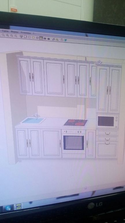 Готово два дизайна кухонного гарнитура. В двух вариантах не нравится отсутствие симметрии у фасадов верха и низа. И еще мне кажется что использование поперечных, двойных и одинарных фасадов портит общую картину.