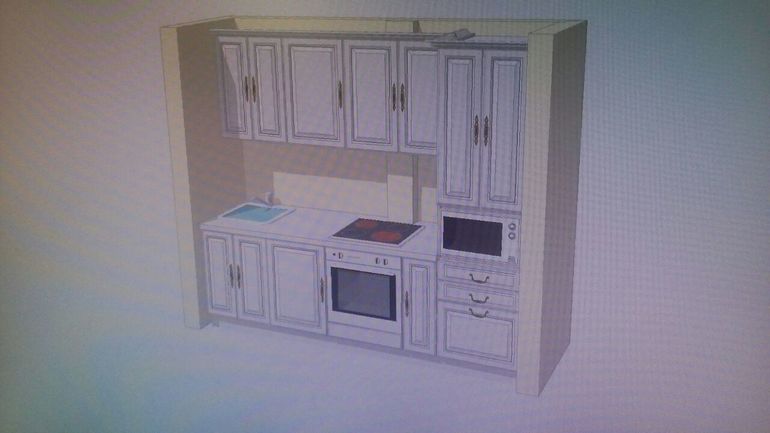 Второй вариант-убрать колону, подвинуть на ее место варочную и духовку, убрать бутылочницу и расширить рядом стоящий ящик. СВЧ в верхний шкаф.