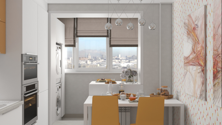Понравилась акцентная стена с картинами в первом варианте, шокировали от неожиданности стиральная и сушильная машина на открытом балконе)