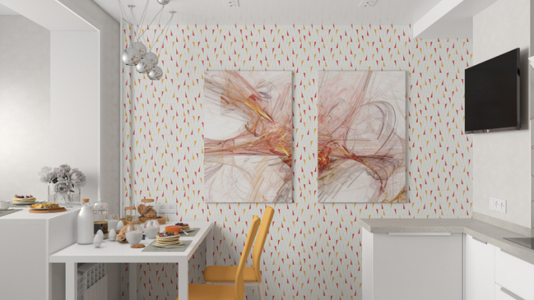 Мебель из 2 варианта в цветах 1 варианта, акцентную стену с постерами из 3.