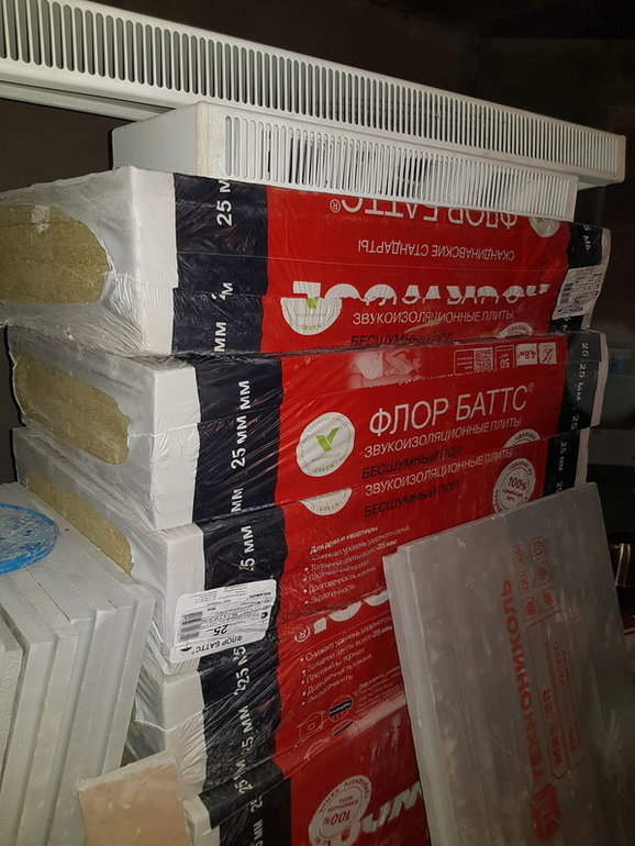 После этого заливаем стяжку. Нам не повезло и соседи сверху уже сделали ремонт.. и никакой шумки не положили под ламинат( слышно абсолютно все. Поэтому приняли решение шумить и потолок.. знаю. что это не столь эффективно, но выбора нет( На потолок мы закупили флор баттс