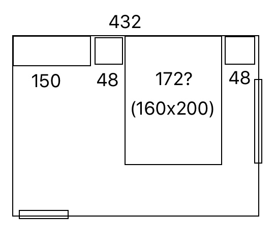 Не хотите кровать поставить к противоположной стене? У вас кровать перекрывает естественное эргономичное движение и в том числе и свет и движение воздуха (вы будите спать в зоне сквозняка - воздух пойдет от окна к двери).