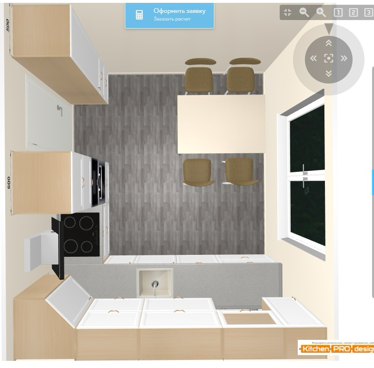 А я бы пенал с духовкой переместила к окошку, духовку и раковину местами поменяла