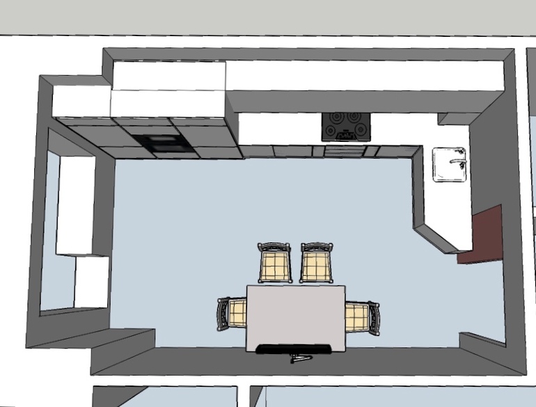 А мойку с самого начала, тогда рабочий стол будет нормальный. И ходить недалеко А в случае чего можно использовать барную стойку. (Особенно, если лепить пельмени или пироги))) У Жанны есть похожий вариант кухни только с эркером. У меня только вопрос: а дизайнеру Вы эту картинку исправленную показывали?