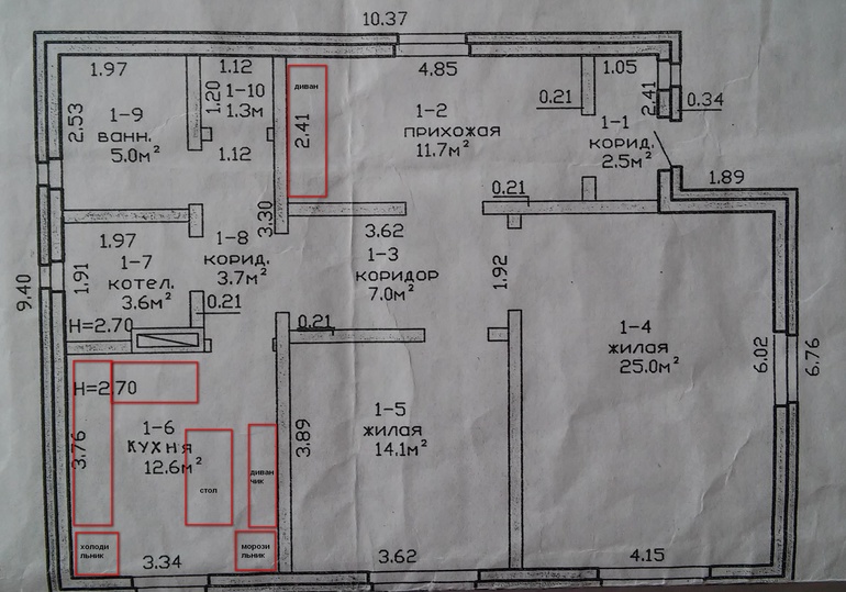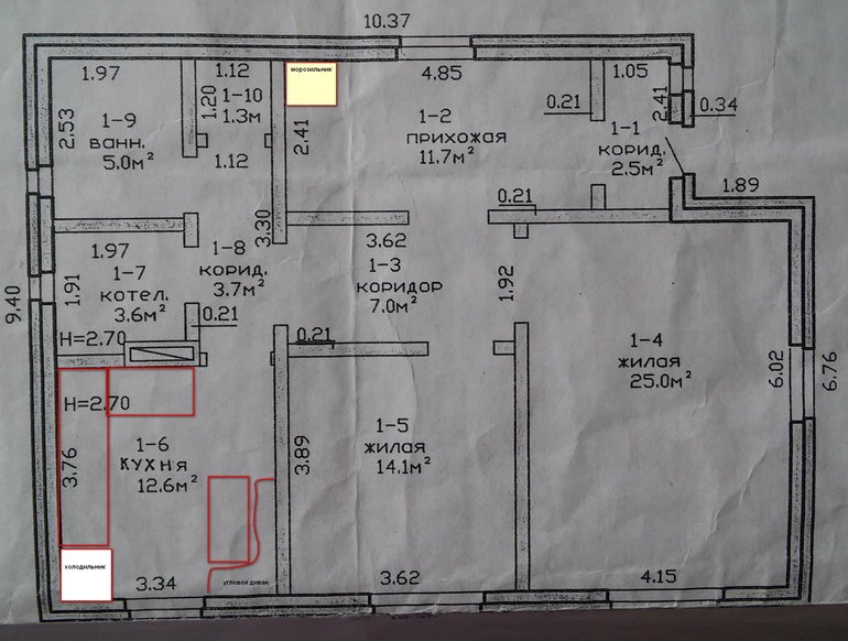 Или морозилку пристроить в коридор 1-3, который? туда, где 0.21 написано.Или в помещение 1-10?