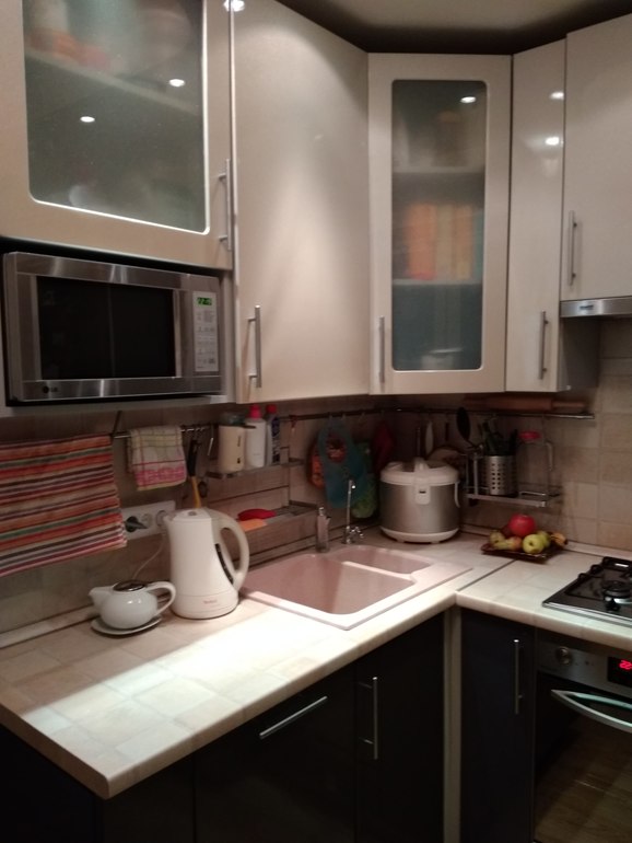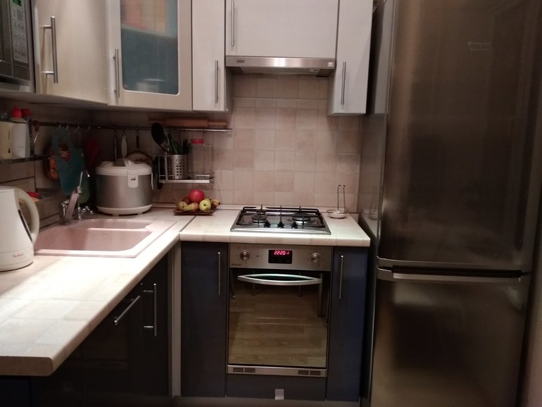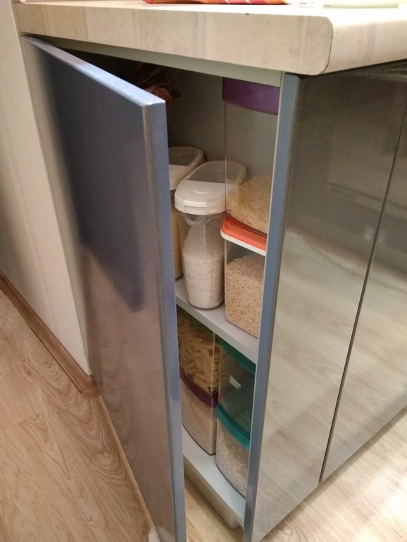 Немного поясню. Справа, где заканчивается кухня стоит холодильник. Шкафчики, которые нарисованы отдельно слева, на самом деле висят на противоположной стороне от холодильника, над столом. Слева от пмм находится фальш-панель, а дверка открывается с торца, там, где написано "без ручки". В нише над пмм микроволновка. Нишу заказывали по размеру под конкретную модель, поэтому смотрится почти, как встроенная)) Ещё была идея выдвижной шкафчик под плитой сделать над плитой, чтобы использовать под приборы. Но я спохватилась поздно, а вот подруга реализовала на своей кухне, осталась довольна. Мойку поставили с двумя чашами, причем расположили так, чтобы граница между чашами проходила прям по стыку гарнитура. Так и мыть удобно- не в углу, и рабочая поверхность слева приличная. Ну, как приличная... Для такой кухни))